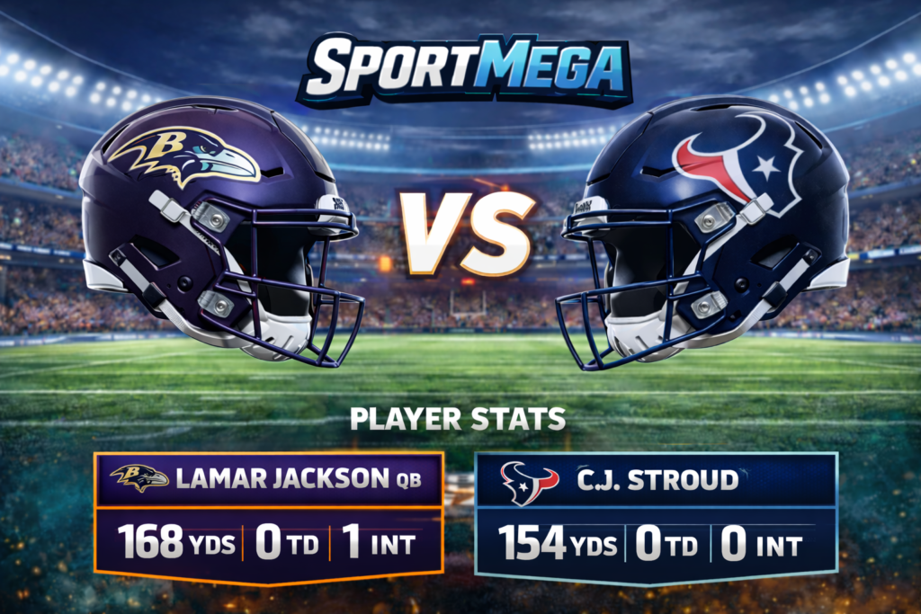 The Baltimore Ravens vs Texans match player stats show a clear story. Houston controlled the game with strong passing, solid rushing, and powerful defense. C.J. Stroud’s four touchdown passes were a major highlight. Baltimore struggled with turnovers and low rushing production.