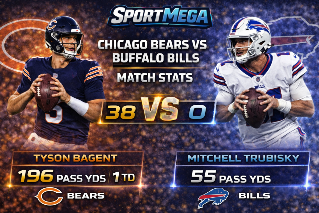 The Chicago Bears vs Buffalo Bills match player stats clearly show how the game unfolded. The Bears controlled the game from start to finish with strong offense and defense. The Bills struggled to find rhythm and could not match the Bears energy.