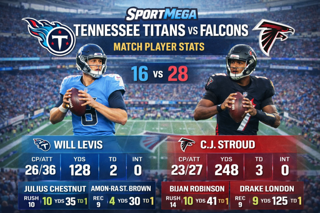 The Tennessee Titans vs Atlanta Falcons match player stats show a balanced and competitive game.