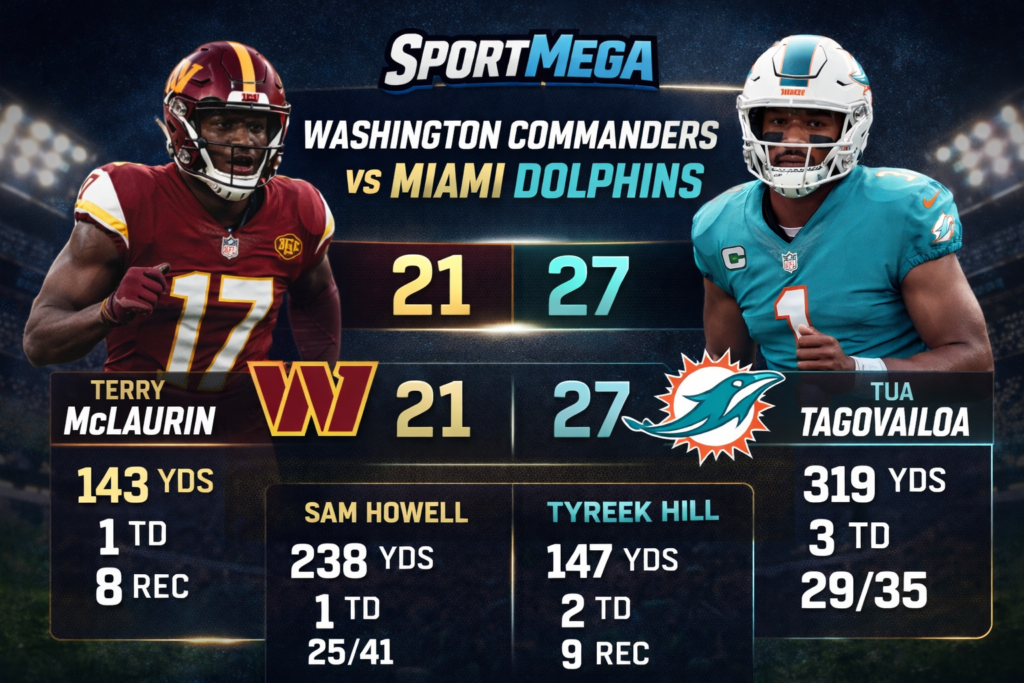 In this article, we will look closely at player stats from recent Washington Commanders vs Miami Dolphins games. We will explain how quarterbacks, running backs, wide receivers, and defensive players performed. This article is written in simple and clear English so everyone can enjoy and understand it.